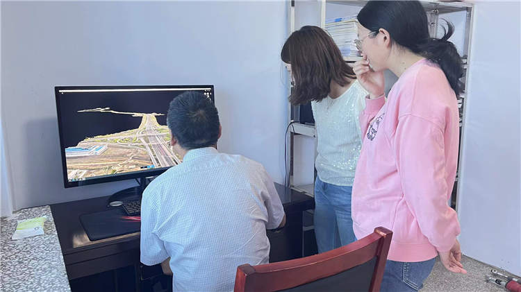 通過無人機測繪技術進行外業(yè)勘察,準確地掌握了橋梁、平交口、路基防護等地物的現場實際分布情況。此外,設計等內業(yè)工作也在有序地開展,李總與設計人員一起嚴謹探討公路標志設計方案,解決設計難點,確保高質量、高質量完成設計任務。